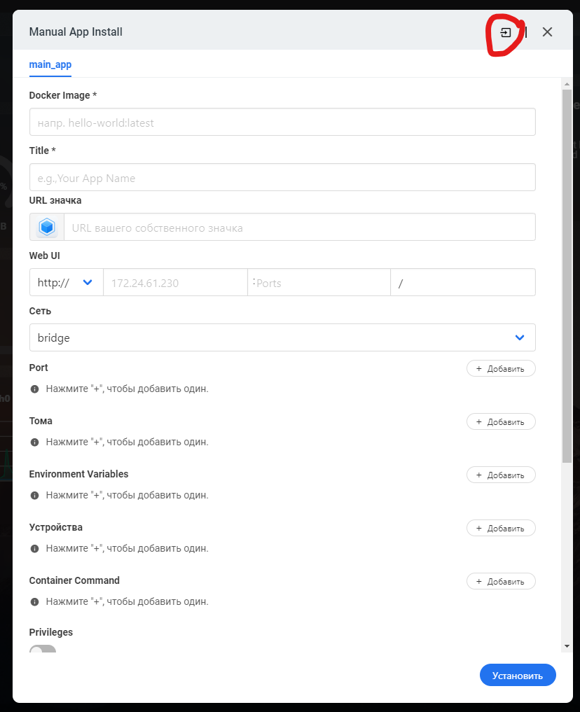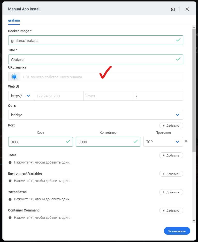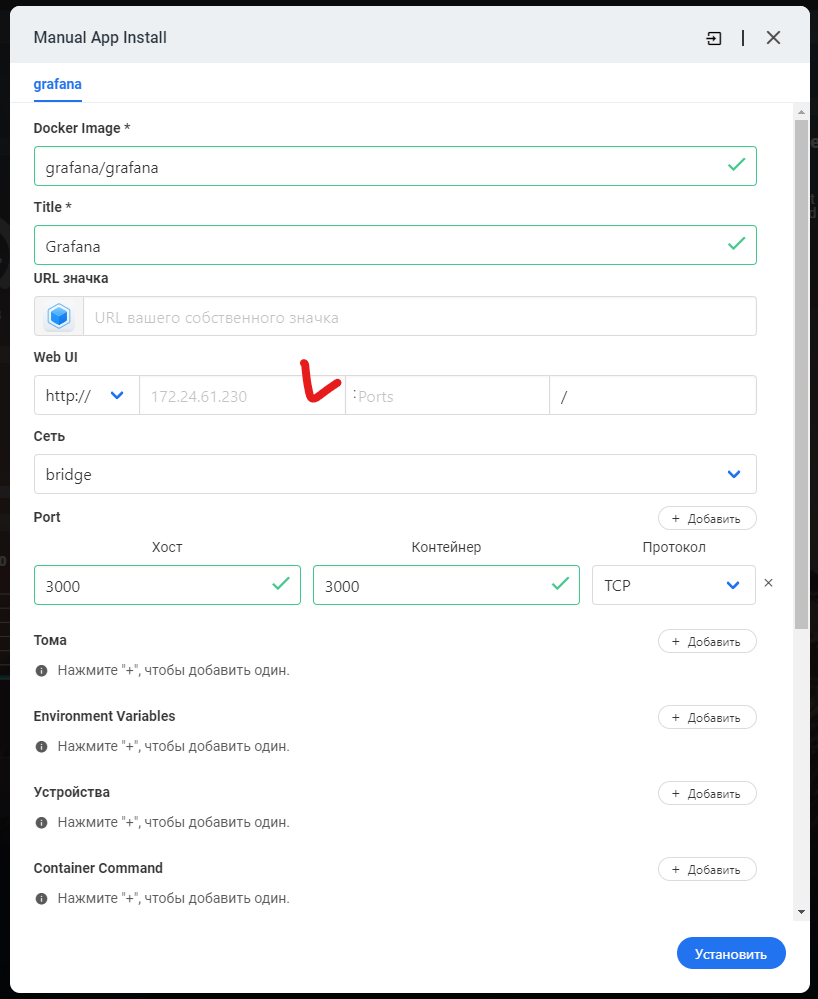 Не забудьте указать Web UI: