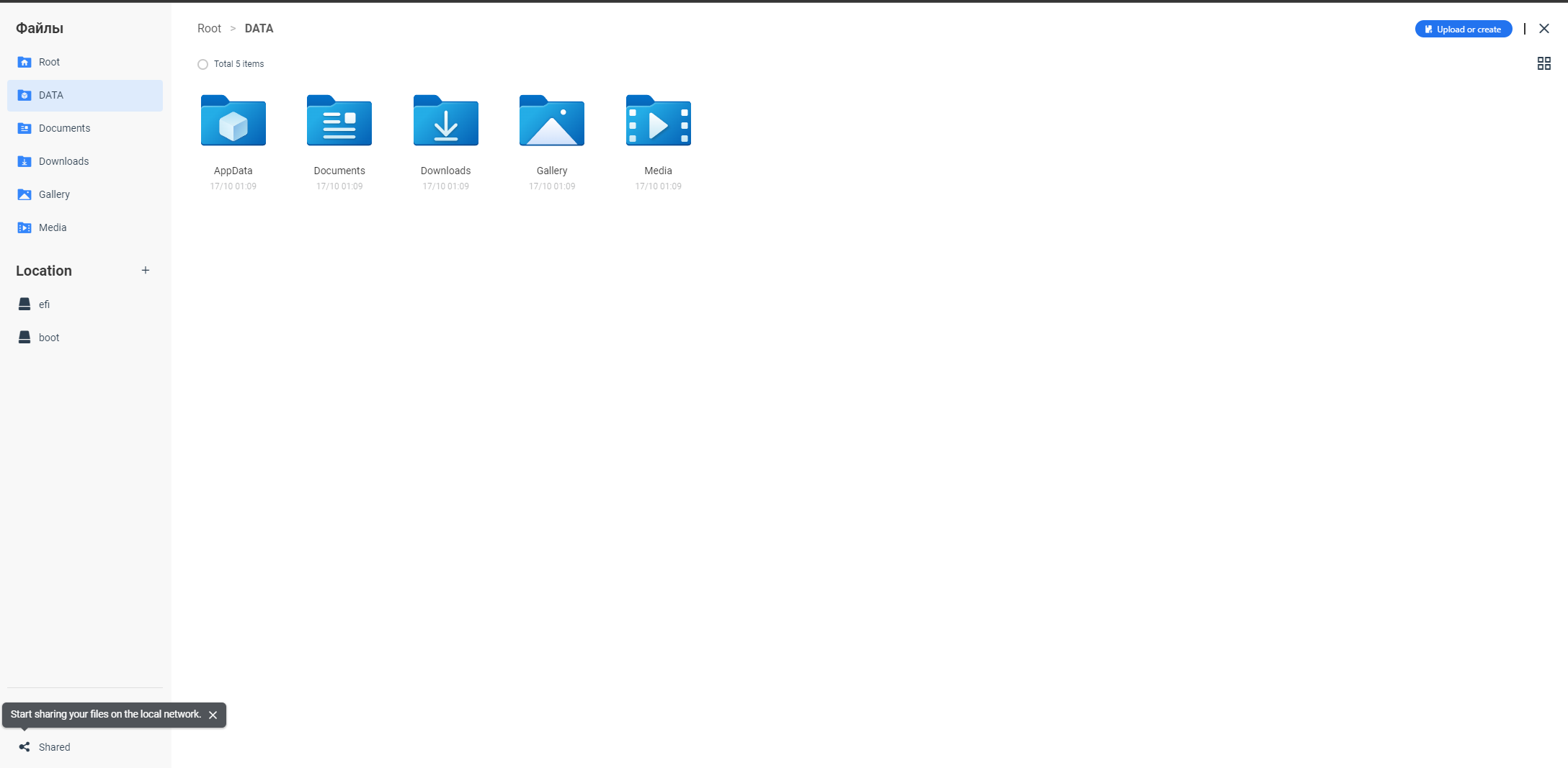 В данной системе есть полноценный файловый менеджер, где можно разшарить папки на вашем сервере\ПК: